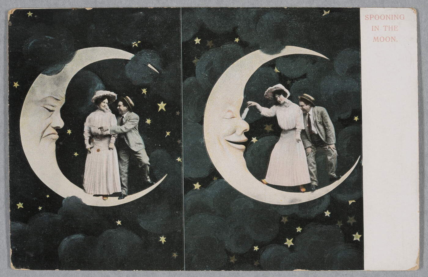 u.r. printed in red: SPOONING \ IN THE \ MOON.