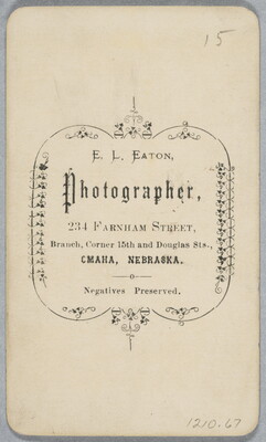 c. printed: E. L. EATON, \ Photographer, \ 234 FARNHAM STREET, \ Branch, Corner 15th and Douglas Sts., \ OMAHA, NEBRASKA. \ Negative Preserved.