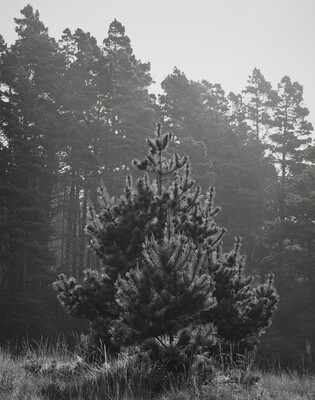 u.c. stamped in black ink: PHOTOGRAPH / BY / ANSEL ADAMS / ROUTE 1, BOX 181 / CARMEL, CALIFORNIA / TITLE at Timber Cove Small Pine Tree [handwritten in black ink] / NEGATIVE NO. 6-102-55-11 [handwritten in black ink] / CREDIT
