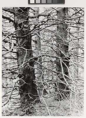 c. [stamp]: PHOTOGRAPH \ BY \ ELIOT PORTER \ [in graphite]: Spruce Trees \ Maine