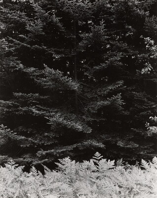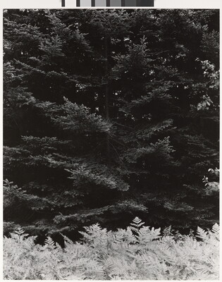 c. on paper label: [printed]: PHOTOGRAPH \ By ELIOT F. PORTER \ Address [in ink]: 10 El Zaguan \ Santa Fe, N.M. \ [printed]: Date [in ink]: August 1938 [printed]: Subject [in ink]: Spruce Trees, Maine \ [printed]: Negative \ Exposure \ Print Process
