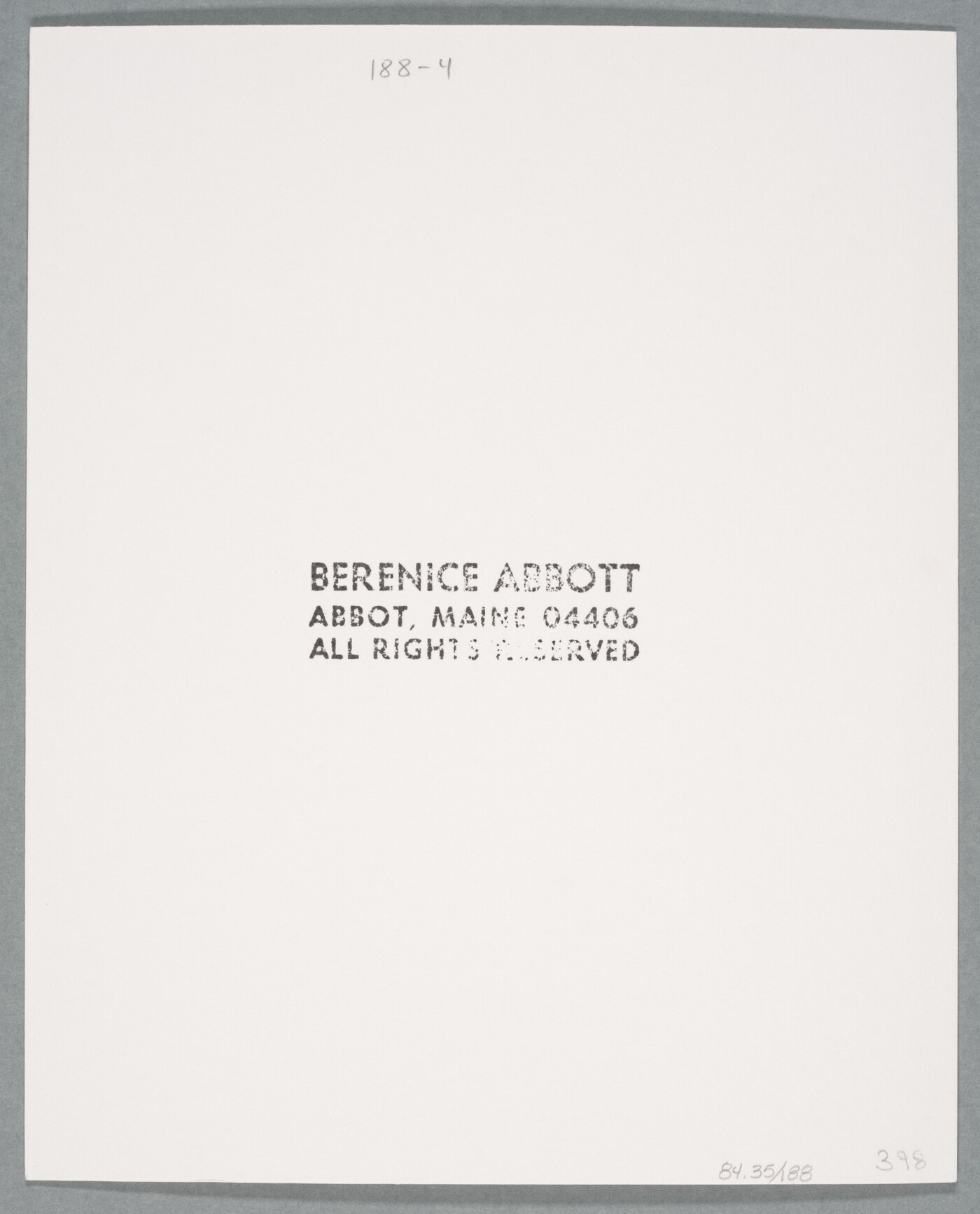 c. [stamp]: BERENICE ABBOTT \ ABBOT, MAINE 04406 \ ALL RIGHTS RESERVED