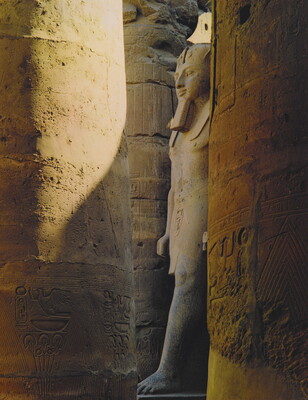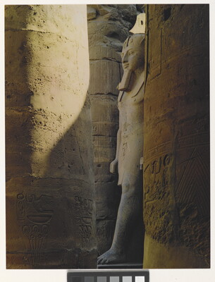 u.l. [stamp]: PHOTOGRAPH \ By \ ELIOT PORTER \ No. [in ink]: 73-104 \ [stamp]: Title [in ink]: Statue of Ramesses II \ Court of Ramesses II \ Luxor