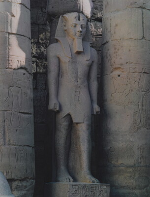 Statue of Ramesses, South Corner of Court of Ramesses II, Temple of Luxor, Egypt, January 27, 1973