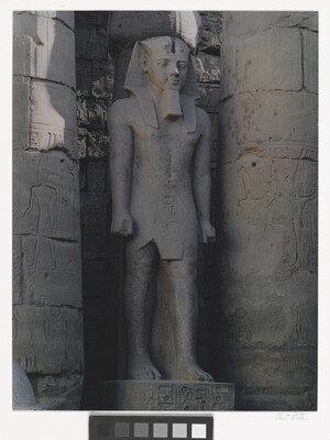 u.l. [stamp]: PHOTOGRAPH \ By \ ELIOT PORTER \ No. [in ink]: 73-97 \ [stamp]: Title [in ink]: statue of Ramesses II \ Court of Ramesses \ Luxor