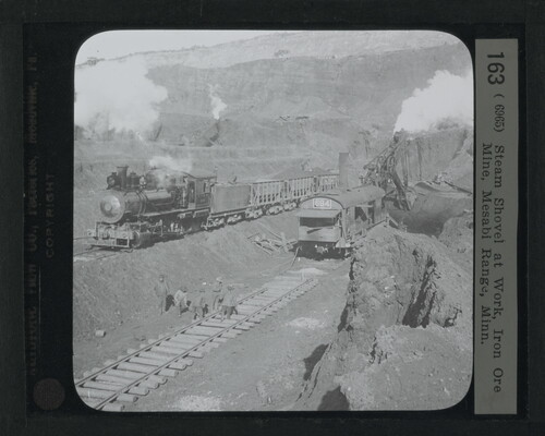 u.r. to l.r. printed along left edge: 163 (6965) Steam Shovel at Work, Iron Ore \ Mine, Mesabi Range, Minn.
