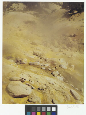 u.l. [stamp]: PHOTOGRAPH \ By \ ELIOT PORTER \ No. [in ink]: 75-641 \ [stamp]: Title [in ink]: STEAM VENT AND SULPHUR \ LASSEN VOLCANIC PARK, CALIF.