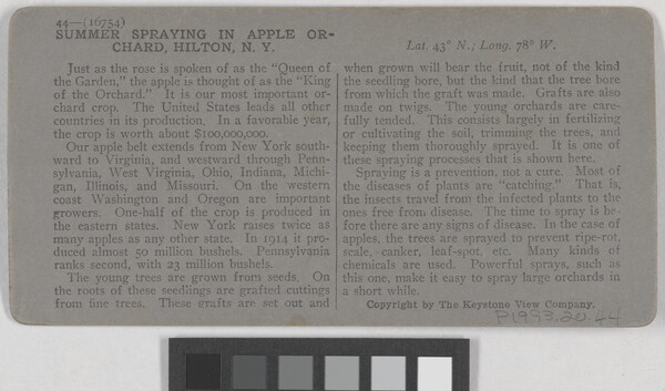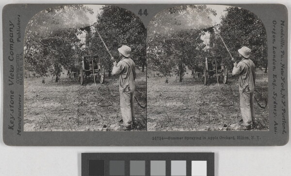l.r. printed: 16754 - Summer Spraying in Apple Orchard, Hilton, N.Y.