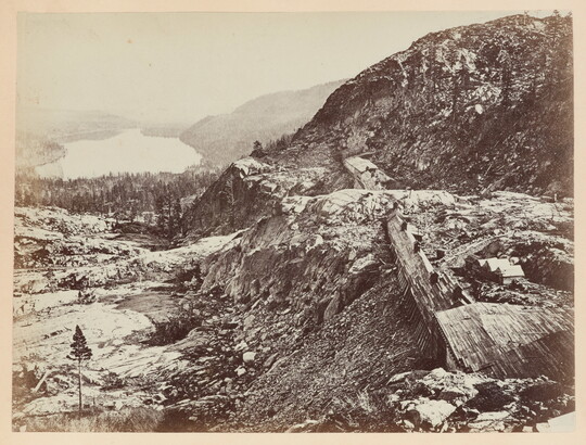 Summit of the Sierra Nevada, Snow Sheds in the Foreground, Donner Lake in the Distance, C.P.R.R., 1868-1870