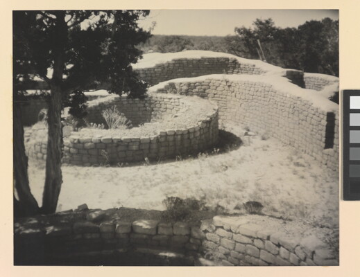 u.c. on paper label: [printed]: A : PHOTOGRAPH \ BY : LAURA : GILPIN \ TITLE [typed]: SUN TEMPLE \ Mesa Verde National Park \ (Copyright) \ [printed]: COLORADO : SPRINGS : COLORADO