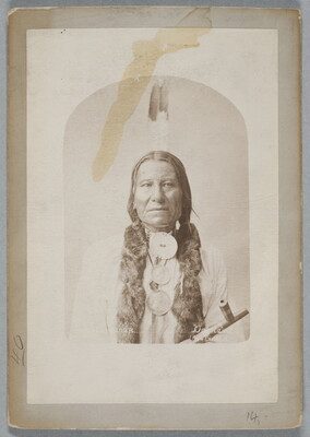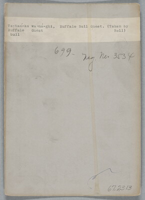 u.l. to u.r. printed on paper label: [left side of label] Ta-tan-ka wa-na-ghi, \ Buffalo \ bull \ Ghost \ [right side of label] Buffalo Bull Ghost. (Taken by \ Bell)