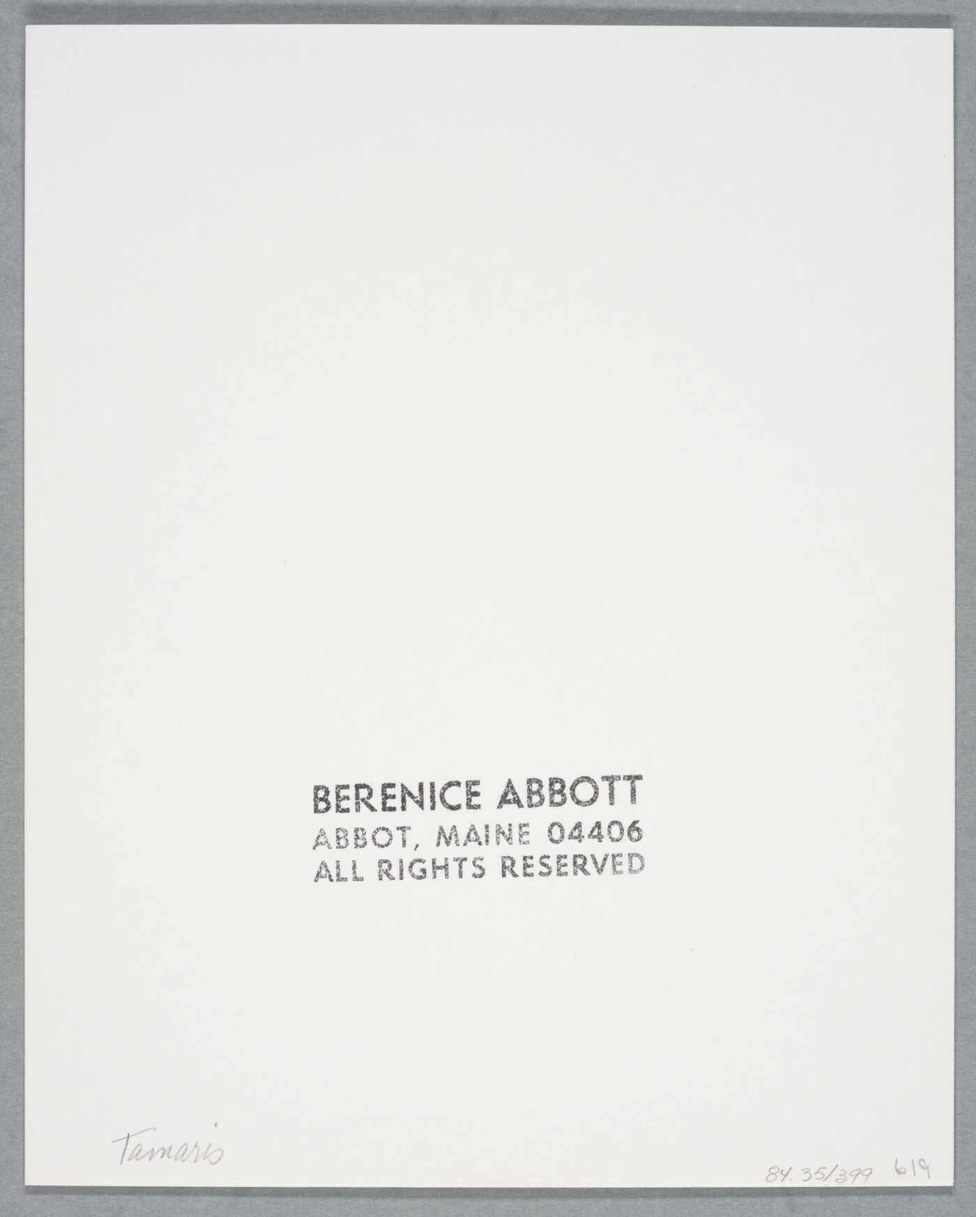 stamped c.: BERENICE ABBOTT \ ABBOT, MAINE 04406 \ ALL RIGHTS RESERVED