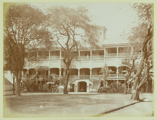 [Three-story residence with verandas on each level]
