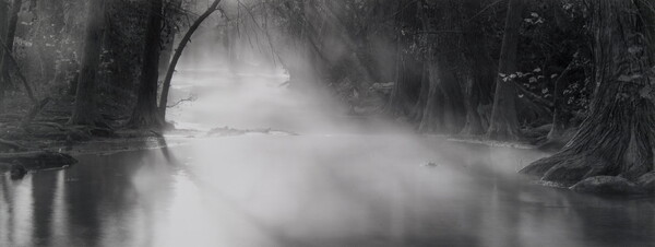 c. printed on artist's label: DAVID H. GIBSON [underlined] / PHOTOGRAPH / THREE TREES, CYPRESS CREEK, [in graphite] / WIMBERLEY, TEXAS [in graphite] / 410 97 89 [printed in graphite above NEGATIVE NUMBER] 1997 [printed in graphite above NEGATIVE MADE] 1997 [printed in graphite above PRINT MADE] / SELENIUM TONED GELATIN SILVER PRINT / PRINTED BY THE PHOTOGRAPHER / PHOTOGRAPH COPYRIGHT [copyright symbol]
