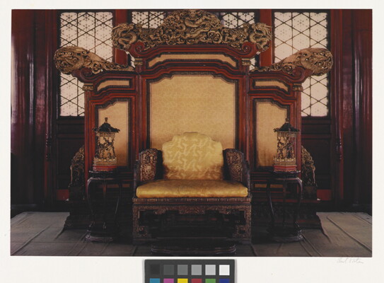 u.l. [stamp]: PHOTOGRAPH \ By \ ELIOT PORTER \ No. [in ink]: Roll 5, No. 34 [in graphite]: 1980 \ [stamp]: Title [in ink]: Throne Room \ Imperial Palace \ Peking