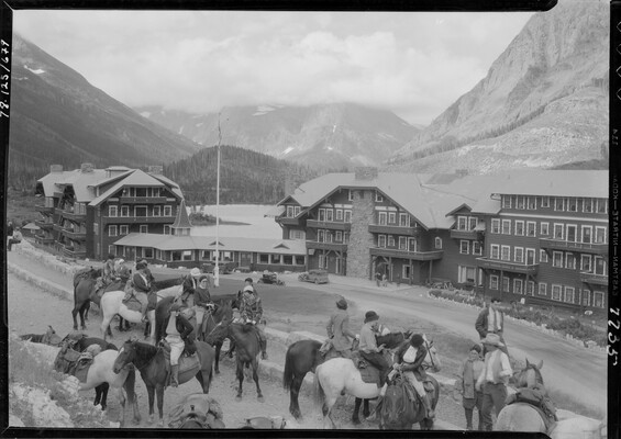 [Tourists on horseback, Glacier Park Lodge]