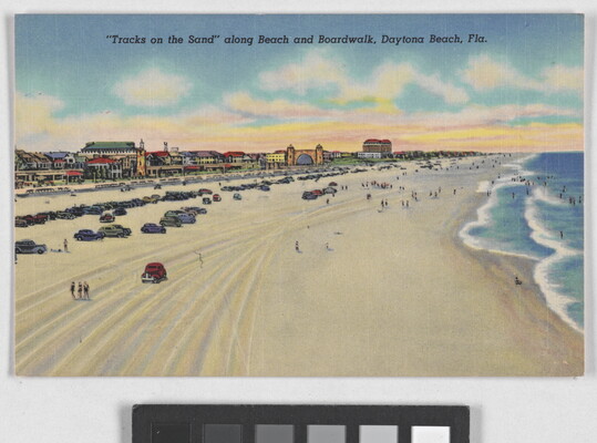 "Tracks on the Sand" Along Beach and Boardwalk, Daytone Beach, Fla.
