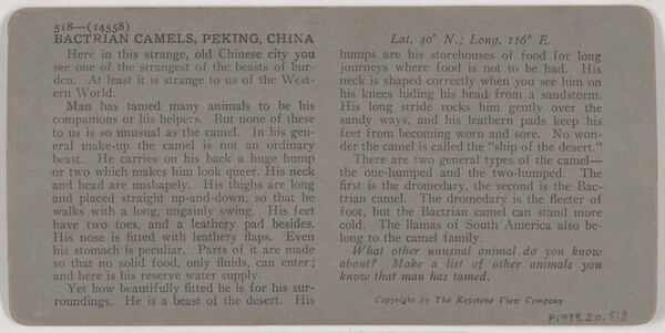 l.r. printed: 14558 - Train of Bactrain Camels, Peking, China.