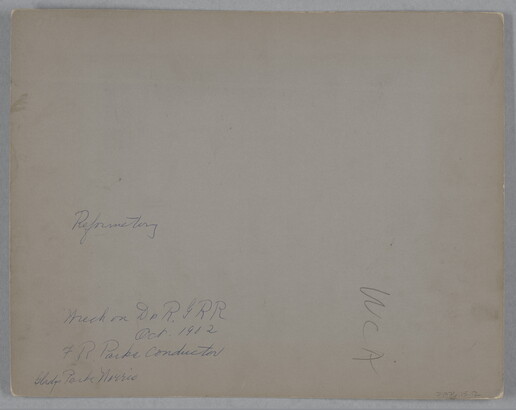 l.l. in blue ink: Wreck on D & R. G. R.R. \ Oct. 1902 \ F. R. Parks Conductor \ Gladys Park Norris