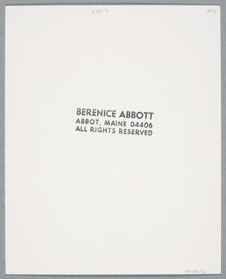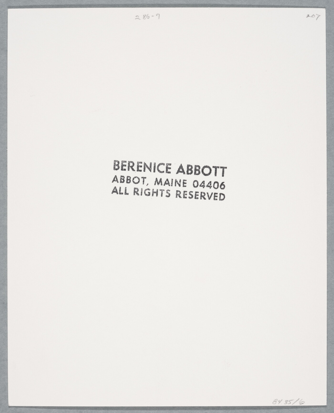 c. stamp: BERENICE ABBOTT \ ABBOT, MAINE 04406 \ ALL RIGHTS RESERVED