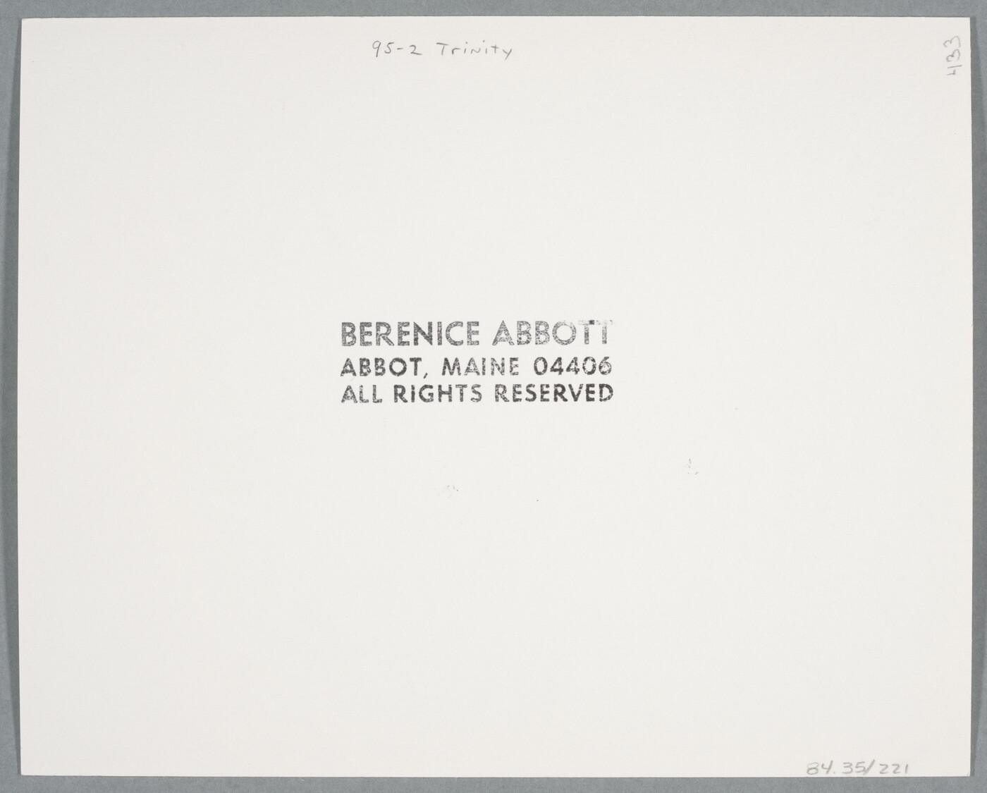 c. stamp: BERENICE ABBOTT \ ABBOT, MAINE 04406 \ ALL RIGHTS RESERVED
