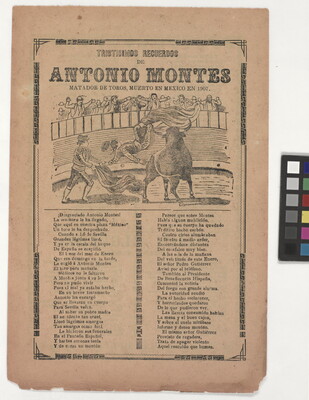 u.c.: TRISTISIMOS RECUERDOS \ DE \ ANTONIO MONTES \ MATADOR DE TOROS, MUERTO EN MEXICO EN 1907