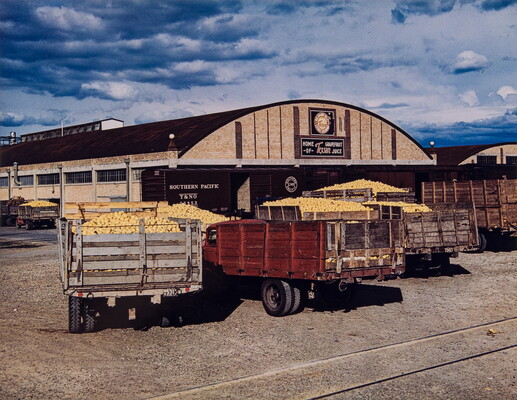 Trucks Loaded with Grapefruit Lined Up Before the World's Largest Citrus Juice Canning Plant at Weslaco, Texas