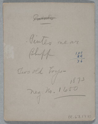 c. in graphite: Paiutes near \ Bluff \ Two old boys \ 1873 \ Neg. No. 1650