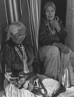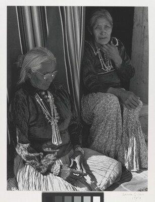 u.c. on paper label: [printed]: A PHOTOGRAPH BY \ LAURA GILPIN \SANTA FE, NEW MEXICO \ [typed]: TWO NAVAHO WOMEN 1954 \ From THE ENDURING NAVAHO, \ University of Texas Press