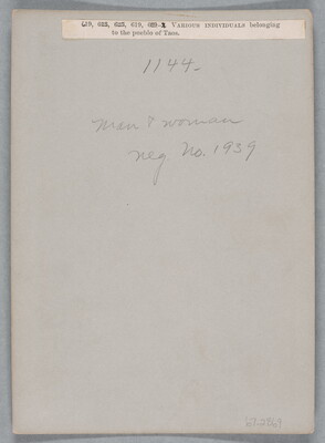 u.c. to u.r. printed on paper label: 619, 613, 625, 619, 621-2. [all except 619 crossed out] VARIOUS INDIVIDUALS belonging \ to the pueblo of Taos.