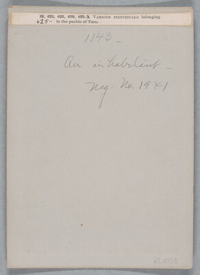 This information is published from the Carter's collection database. Updates and additions based on research and imaging activities are ongoing. The images, titles, and inscriptions are products of their time and are presented here as documentation, not as a reflection of the Carter’s values. If you have corrections or additional information about this object please email us to help us improve our records.