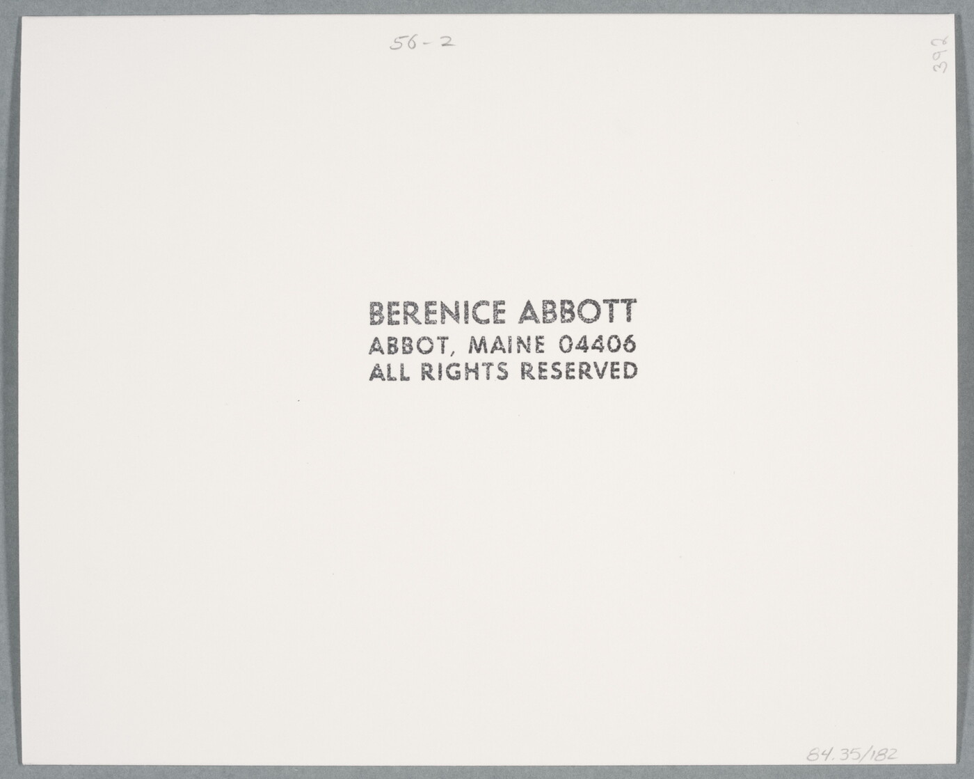 c. stamp: BERENICE ABBOTT \ ABBOT, MAINE 04406 \ ALL RIGHTS RESERVED
