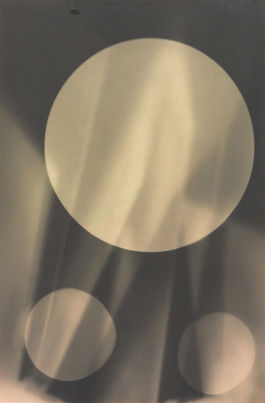 Kepes came to the U.S. in 1937 at the invitation of fellow Hungarian László Moholy-Nagy, who was opening a Chicago design institute inspired by the Bauhaus, the famed interdisciplinary German art school that had revolutionized art education before it closed under pressure from the Nazi regime in 1933. Kepes headed the curriculum on light and color, fostering an experimental approach to photography through photograms, manipulated negatives, and investigations of light, all of which are present in this photograph. The original photogram records light flashing and reflecting through a still life that includes a mirror, a coil of wire, and what appears to be a loupe. Kepes then drew a network of lines directly onto that image, which became the negative for this print, combining processes to create a hybrid work that reflects the Bauhaus’s innovative use of materials and integration of art and design.