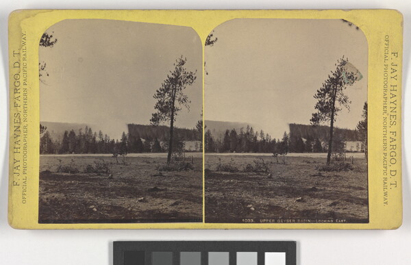 c. printed: Northern Pacific Views, \ ALONG THE LINE OF THE \ NORTHERN PACIFIC RAIL-ROAD, \ FROM \ LAKE SUPERIOR TO THE ROCKY MOUNTAINS, \ UPPER MISSOURI, BLACK HILLS, \ and the famous Yellowstone Park. \ Finest Scenery in the Northwest -- Over 1200 subjects. \ Catalogues Free. Published by \ F. JAY HAYNES, \ OFFICIAL PHOTOGRAPHER, N.P.R.R. \ FARGO, D.T.