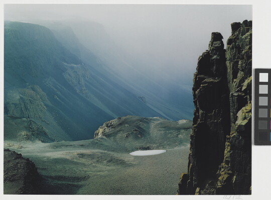 u.l. [stamp]: PHOTOGRAPH \ By \ ELIOT PORTER \ No. [in ink]: 75-970 \ [stamp]: Title [in ink]: Wright Valley \ from The Labyrinth \ Antarctica