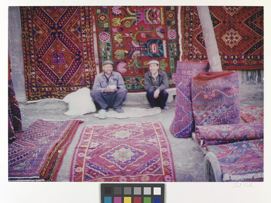 u.l. [stamp]: PHOTOGRAPH \ By \ ELIOT PORTER \ No. [in ink]: Roll 26, No. 3, 1981 \ [stamp]: Title [in ink]: Urumqi \ Rug Market