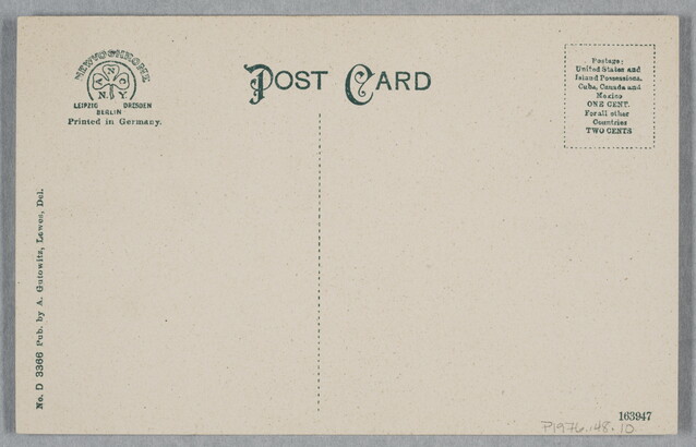 l.l. to c.l. printed along left edge: No. D 3366 Pub. by A. Gutowitz, Lewes, Del.