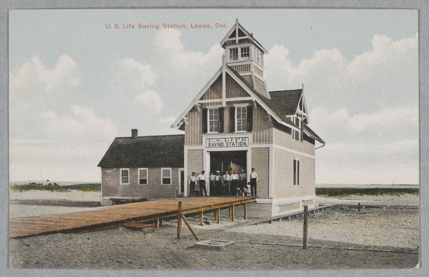u.c. printed in red: U.S. Life Saving Station, Lewes, Del.