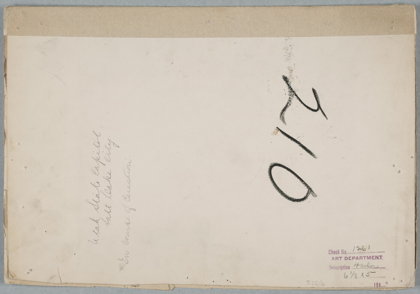 c.l. in graphite: Utah State Capitol \ Salt Lake City \ In Course of Erection