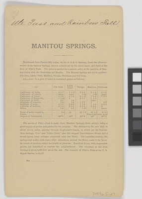 l.l. to l.r. printed: THOS. HINE, PHOTO. D. & R. G. R. R. \ MANITOU SPRINGS, UTE PASS, COLORADO.