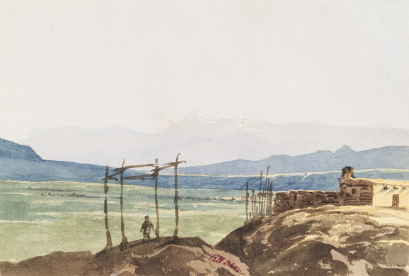 inscribed and dated, below painting: Valley of Taos, looking south, N.M. 1849.