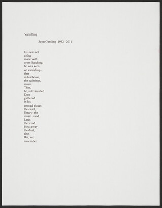 Typed document. "Vanishing, Scott Gentling 1942-2011." 2011.