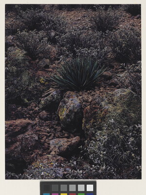 Vegetation on Hillside, Lichen-Covered Rocks Below El Marmol, Baja California, March 31, 1964