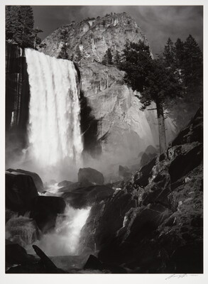 c. [printed on label]: Porfolio Four \ WHAT MAJESTIC WORD \ BY \ ANSEL ADAMS \ In Memory of Russell Varian \ VI \ VERNAL FALL, YOSEMITE VALLEY, CALIFORNIA \ SET NUMBER 123 \ PUBLISHED BY THE SIERRA CLUB \ SAN FRANCISCO, 1963 \ Reproduction rights reserved