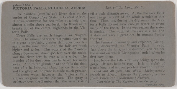 l.r. printed: 17004 - Victoria Falls on the Zambesi River, Rhodesia, Africa.