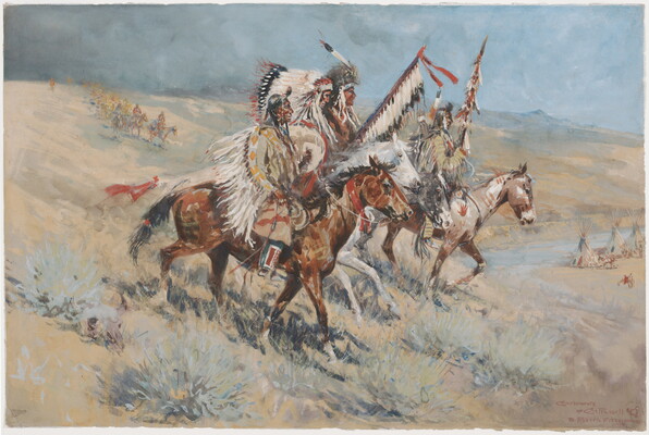 l.r. signed, inscribed, and dated: Complements[sic] \ of C M Russell [skull] \ to Robert Fitzsimmons \ 1902