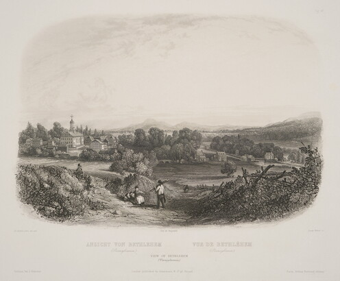 l.c.: Imp. de Bougeard \ ANSICHT VON BETHLEHEM VUE DE BETHLÉHEM \ (Pennsylvanien) (Pennsylvanie) \ VIEW OF BETHLEHEM \ (Pensylvania) \ London published by Ackermann & CO. 96 Strand \ [blind stamp]