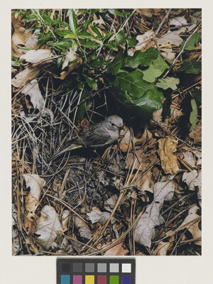 u.l. [stamp]: PHOTOGRAPH \ By \ ELIOT PORTER \ No. [in ink]: 15-13-25-26 \ [stamp]: Title [in ink]: Virginia Warbler, [female symbol]