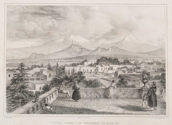 l.c.: Lit. Mialhe Fr. S[t]. Honore 35 \ VISTA SOBRE LOS VULCANES DE MEXICO. \ desde el pueblo de Tacubaya.