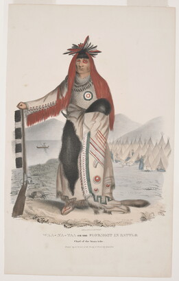 printed l.c.: Lehman & Duval Lith[rs]. Philad[a]. \ WAA-NA-TAA OR THE FOREMOST IN BATTLE \ Chief of the Sioux tribe. \ Painted by J.O. Lewis at the Treaty of Prarie [sic] du Chein [sic] 1825.